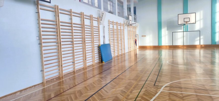 Dzięki przeprowadzonym pracom sala gimnastyczna zyskała nowy, estetyczny wygląd, lepsze oświetlenie oraz dodatkowe zabezpieczenia.
