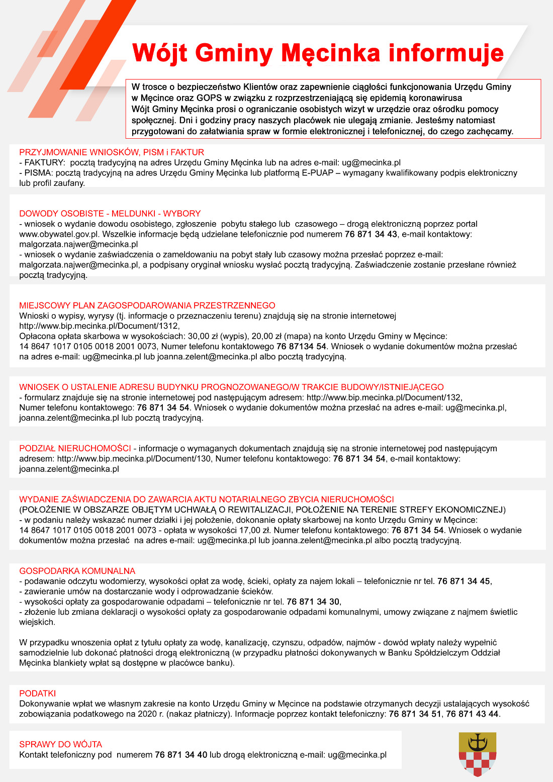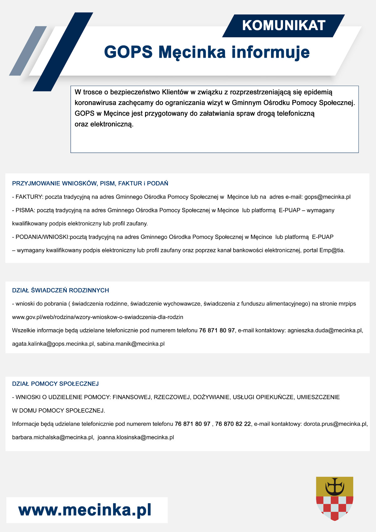 W związku z nowymi obostrzeniami dotyczącymi przewozu osób w komunikacji publicznej w związku z epidemią koronawirusa przedstawiamy nowy harmonogram dowozów wypracowany podczas dzisiejszego Zespołu Zarządzania Kryzysowego zwołanego przez Wójta Gminy Męcinka. nowy harmonogram umożliwia dowóz dzieci do szkół w bezpiecznych warunkach oraz uczestnictwo uczniów w zajęciach zgodnie z planem lekcji.
