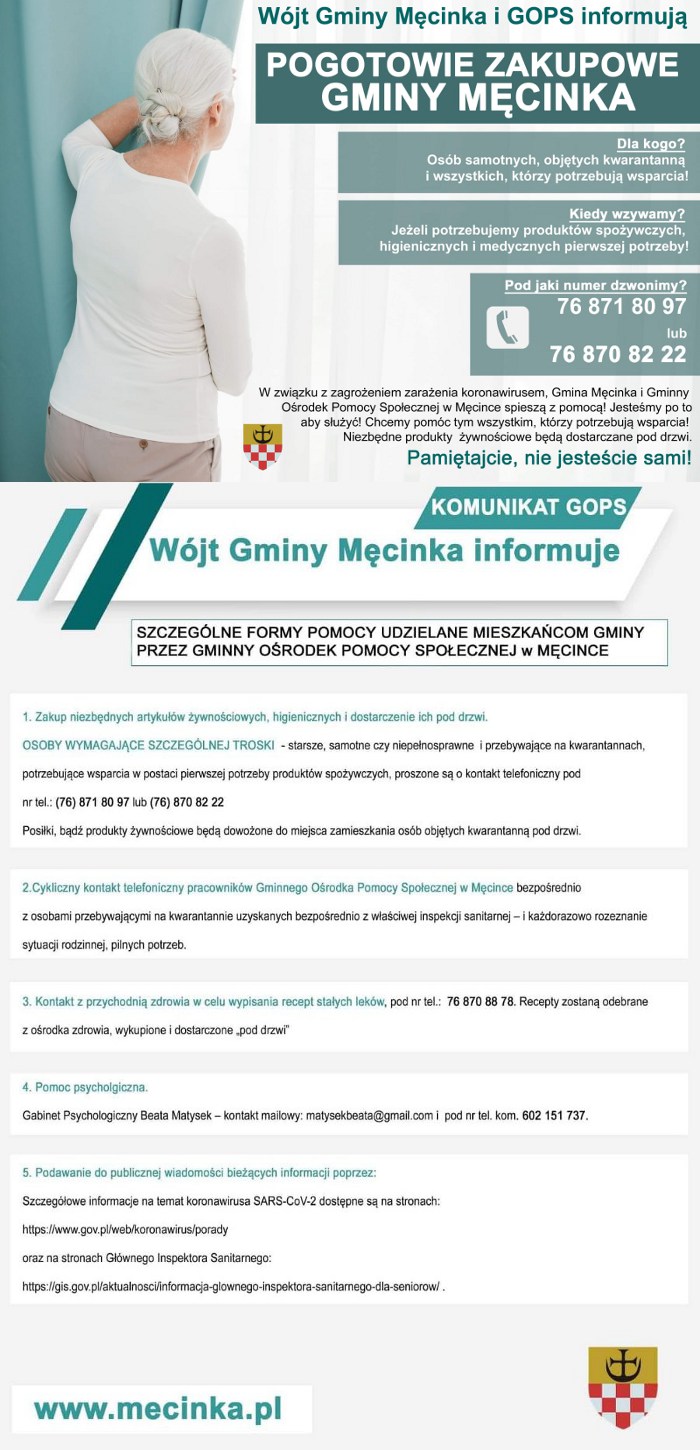 W związku z epidemią koronawirusa Urząd Gminy w Męcince i GOPS w Męcince przypominają o pomocy osobom samotnym, objętym kwarantanną i wszystkim, którzy potrzebują wsparcia.