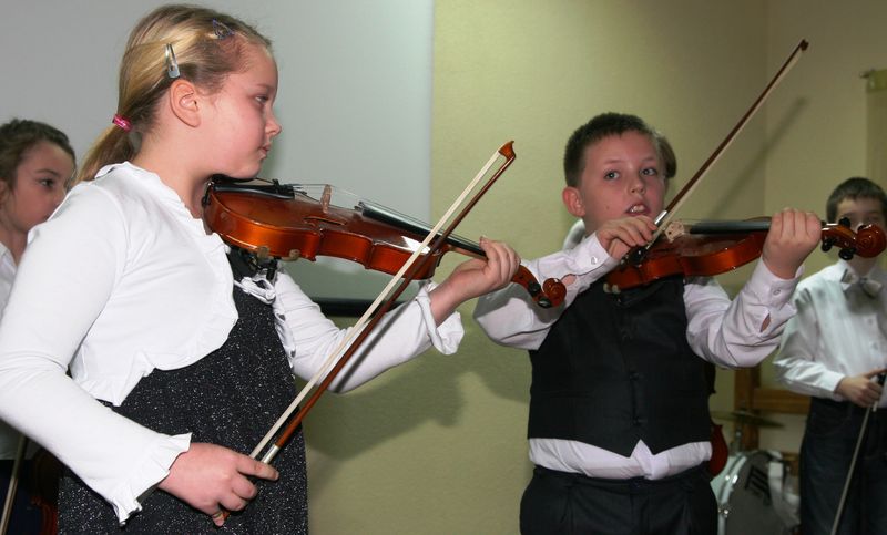 Dzięki pozyskaniu przez OSP Męcinka, której prezesem jest Wiesław Gregulski, dotacji w wysokości 48.800 zł, 50 dzieci z terenu gminy Męcinka przez 2012 rok uczyło się bezpłatnie grać na instrumentach muzycznych. 20 osób pobierało lekcje gry na syntezatorze (nauczyciel Adrian Drozd), 10 osób na skrzypcach (nauczyciel Ryszard Wachowski), 20 osób na gitarze (nauczyciel Zbigniew Woźny). Ponadto 40 osób uczęszczało na lekcje śpiewu w formie chóru. Odbyły się również warsztaty z muzykiem i umuzykalnienie. Projekt w w/w kwocie został dofinansowany przez Unię Europejską, w ramach Europejskiego Funduszu Społecznego, Programu Operacyjnego Kapitał Ludzki, działania 9.5 Oddolne inicjatywy edukacyjne na obszarach wiejskich. Partnerem w projekcie była Gmina Męcinka, która bezpłatnie udostępniła sale w szkołach, zapewniła obsługę księgową oraz promocję projektu. Podczas koncertu Wiesław Gregulski podziękował wielu osobom, które okazały życzliwość, wsparcie i pomoc w organizacji i realizacji projektu, a mianowicie kierownictwu i pracownikom Urzędu Marszałkowskiego Województwa Dolnośląskiego, wójtowi gminy Zbigniewowi Przychodzeniowi, pracownikom Regionalnego Ośrodka EFS w Legnicy, Zofii Głowiak i Jolancie Cisoń - dyrektorom szkół gminy Męcinka, Katarzynie Roman–Cwynar oraz Helenie Królikowskiej z GOPS–u w Męcince, ks. dr Markowi Kluwakowi proboszczowi parafii w Męcince, kierowniczce Banku Spółdzielczego w Męcince Marii Drożdżewskiej, Janinie Duszeńko z Jaworskiego Stowarzyszenia Rozwoju Kultury oraz Nowej Gazecie Jaworskiej. Sobotni koncert przygotowany został przez Arletę Oksińską – koordynatora projektu oraz Zbigniewa Prędkiewicza, pracownika Urzędu Gminy Męcinka, który dbał o prawidłowe nagłośnienie podczas występów. OSP Męcinka wspólnie z wójtem gminy starają się obecnie o pozyskanie kolejnych funduszy na kontynuację szkółki w 2013 roku.
