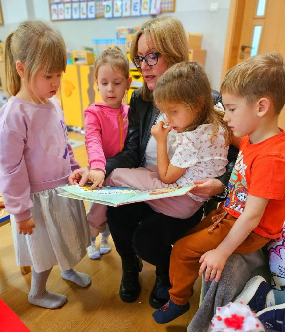 Wspólne czytanie w gminnym przedszkolu w Męcince z Zastępcą Wójta Gminy Męcinka p.Arletą Gregulską-Oksińską.