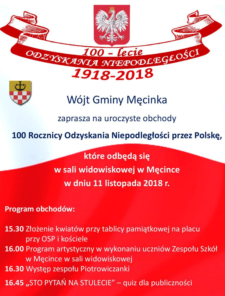 Czytaj więcej: „Niepodległa do Hymnu” – włącz się w ogólnopolskie śpiewanie 11 listopadaPostanowienie Komisarza Wyborczego w Jeleniej Górze z dnia 9 listopada 2018 r. w sprawie zwołania I sesji Rady Gminy Męcinka