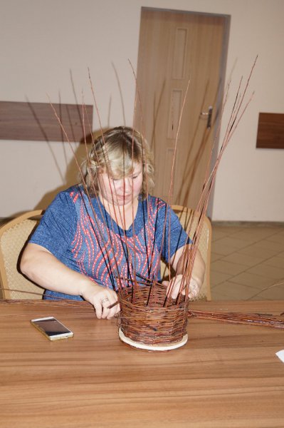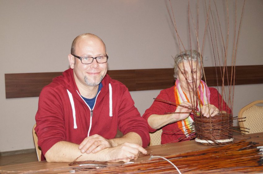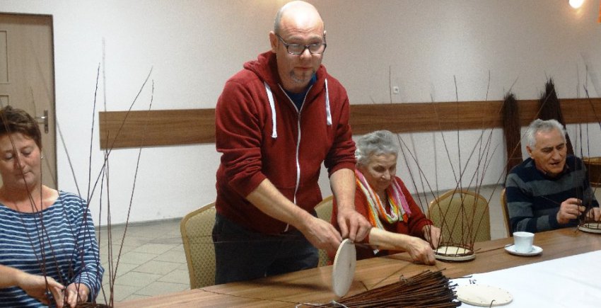 Podczas spotkania artysta opowiedział o swojej twórczości, pokazał uczestnikom spotkania kilka wykonanych przez siebie prac oraz zaprezentował podstawową technikę wyplatania koszy. Uczestnicy warsztatów pod okiem mistrza mieli możliwość spróbować samodzielnego wyplatania koszyków, z czego bardzo chętnie skorzystali. Wykonane prace naszych seniorów były bardzo piękne.