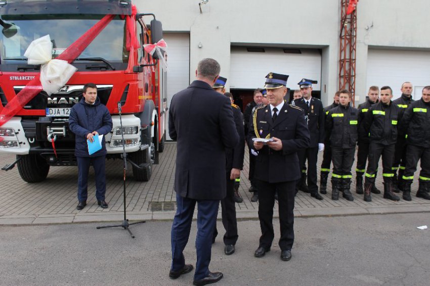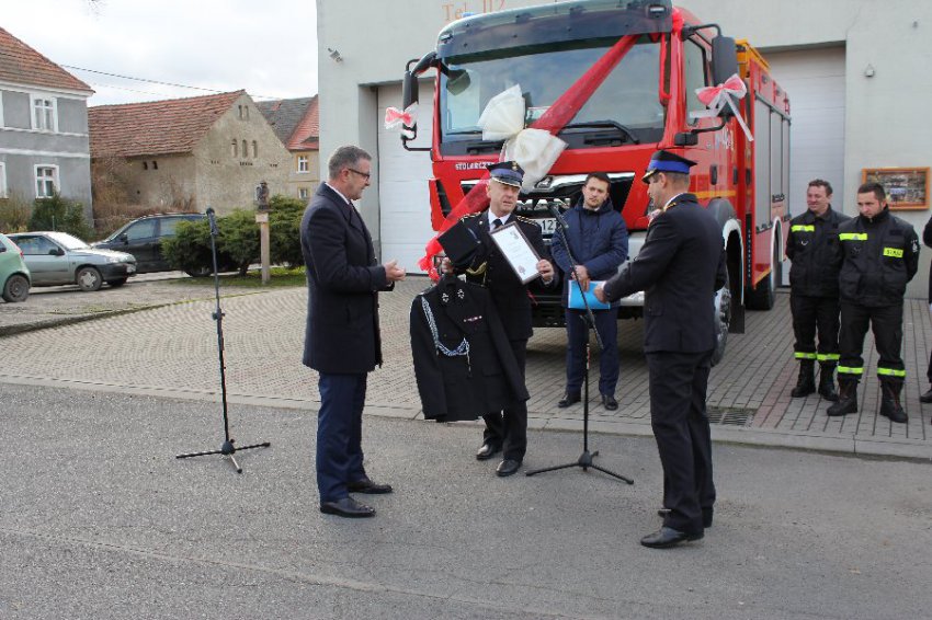 „Oby ten samochód wyjeżdżał jak najczęściej, ale do ćwiczeń” – powiedział Prezes OSP Męcinka. Strażacy w podziękowaniu za zakupiony samochód wręczyli wójtowi mundur strażacki na znak zaproszenia do ich jednostki, a także list z podpisami wszystkich druhów.