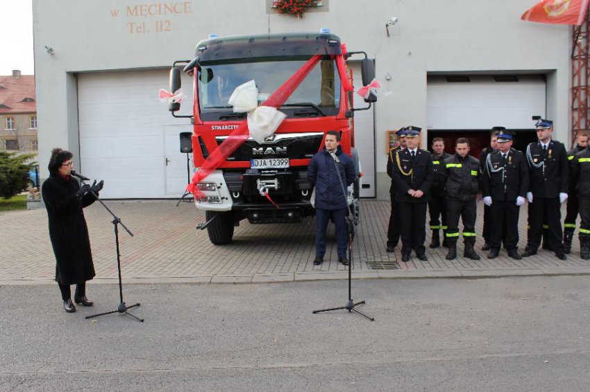 Nowy samochód ratowniczo – gaśniczy zakupiony został przez Gminę Męcinka dzięki pozyskanej dotacji unijnej z Regionalnego Programu Operacyjnego dla Województwa Dolnośląskiego 2014 – 2020 w kwocie 487 040,64 zł. Pozostała część tj. 273 960,36 zł pochodziła z budżetu gminy.