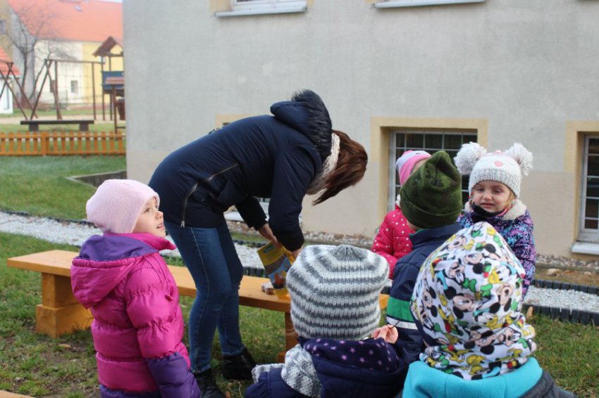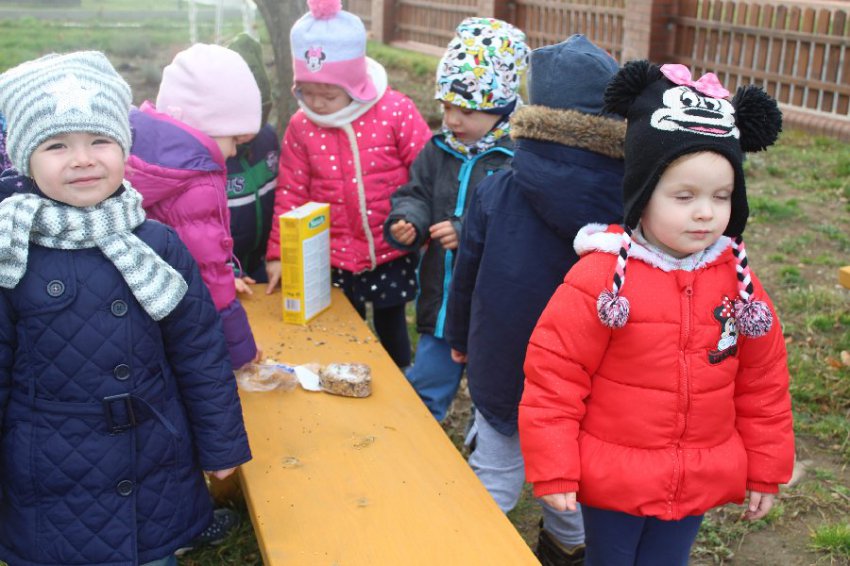 Przedszkolaki wiedzą, że zima to trudny czas dla ptaków, dlatego dbają, aby ptasia stołówka nie była pusta. Dzieci podczas zajęć dowiedziały się, czym można dokarmiać ptaki i same gromadzą ziarna, nasiona i okruszki chleba. Systematycznie uzupełniają zapasy w karmniku, który znajduje się w ogrodzie przedszkolnym. Skrzydlaci przyjaciele na pewno są wdzięczni za pomoc.