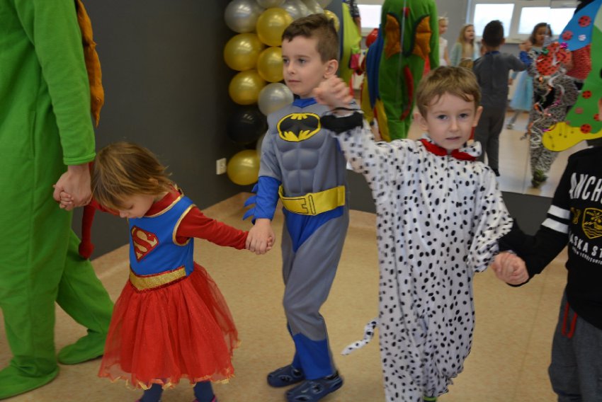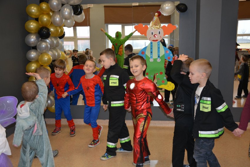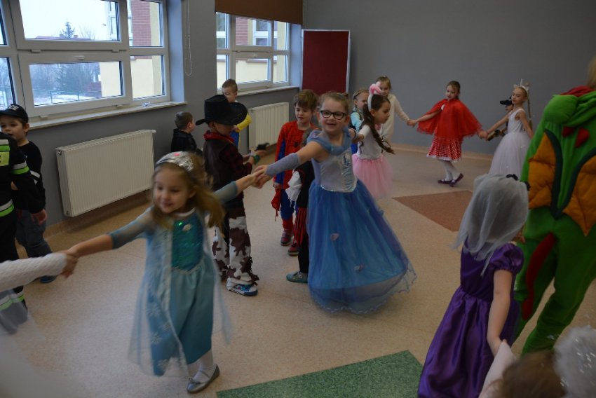 Wystrój auli przygotowany przez Panie z przedszkola, wprowadził wszystkich w radosny nastrój oraz zachęcał do wesołej zabawy. W pierwszej kolejności dzieci miały możliwość pozowania do zdjęć grupowych oraz indywidualnych. Na sali podczas pląsów robiło się kolorowo, wszyscy bawili się wesoło, uśmiech nie znikał z twarzy mimo chwilowego zmęczenia. Podczas odpoczynku uczennice z Samorządu Uczniowskiego zachęcały do śpiewania znanych piosenek, prowadziły różne zabawy i sprzedawały ciasteczka z wróżbami. Wiele śmiechu było podczas tańca z balonikiem i na gazecie. Po kilku chwilach wypoczynku, muzyka znowu porwała wszystkich do tańca. Kiedy czas zabawy dobiegł końca, dzieci z żalem opuszczały salę balową. Kolejny bal karnawałowy już za rok!