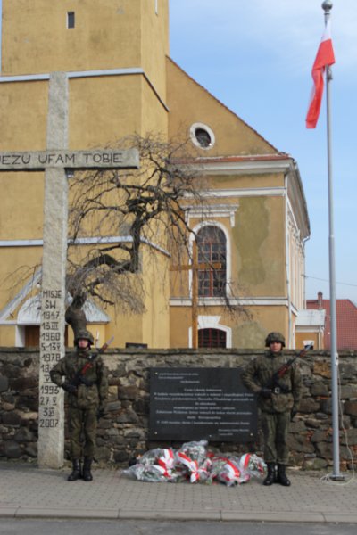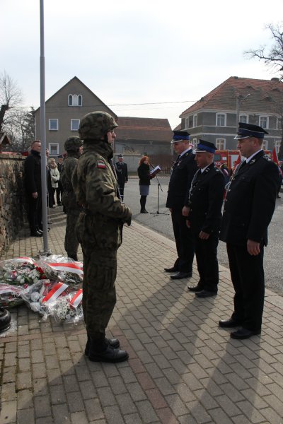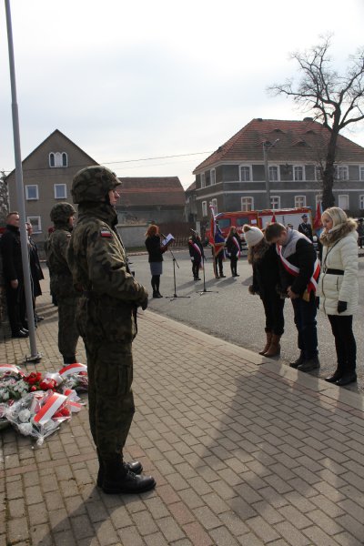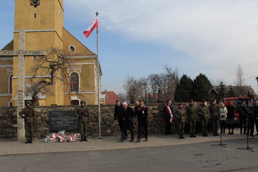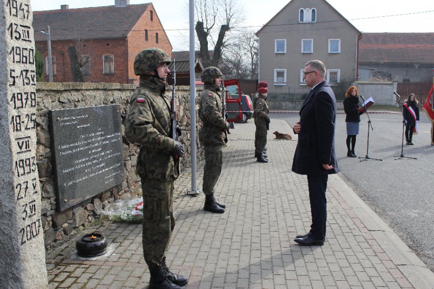 Symboliczne wiązanki pod tablicą upamiętniającą Walczących za Wolną Polskę zostały złożone przez Wójta Gminy Męcinka Mirosława Brzozowskiego, Przewodniczącego Rady Gminy Męcinka Wojciecha Lichonia, Członka Zarządu Powiatu Jaworskiego Stanisława Witka, Wiceprzewodniczącego Rady Powiatu Jaworskiego Sylwestra Rudźca, delegacje szkół Gminy Męcinka, delegacje OSP Męcinka, OSP Pomocne, OSP Małuszów, OSP Przybyłowice.