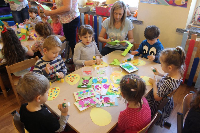 Dzieci z przedszkoli w Męcince, Piotrowicach i Pomocnem po raz kolejny własnoręcznie wykonywały kartki świąteczne, które zostaną wręczone małym pacjentom z Kliniki Transplantacji Szpiku, Onkologii I Hematologii Dziecięcej we Wrocławiu oraz z szpitali w Jaworze i Legnicy. Podczas warsztatów każdy przedszkolak starał się jak najlepiej wykonać swoją kartkę, aby ich rówieśnicy przebywający w szpitalach odczuli radość z nadchodzących Świąt Wielkiej Nocy.