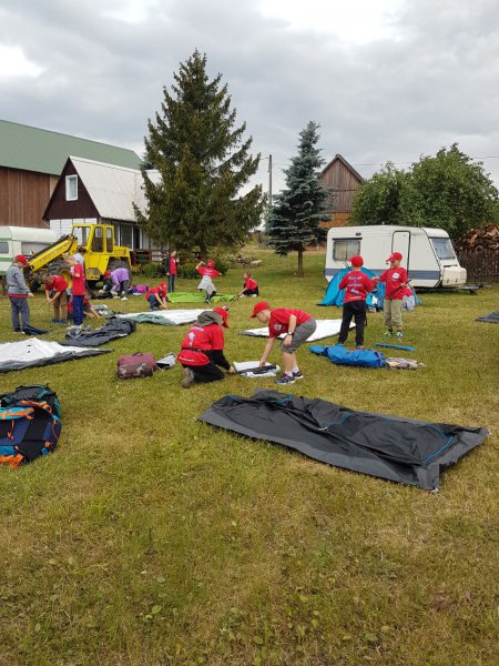 Pozdrowienia dla mieszkańców Gminy Męcinka od dzieci i opiekunów ze spływu kajakowego Czarną Hańczą, organizowanego w ramach Systemu Motywacyjnego Wójta Gminy Męcinka.