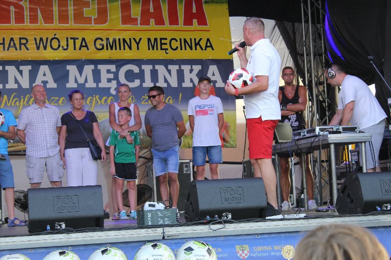 W V Jubileuszowym Turnieju Lata o Puchar Wójta Gminy Męcinka, w minioną niedzielę 5 sierpnia br. na kompleksie sportowym w Męcince, rywalizowały ze sobą zarówno drużyny dziecięce i młodzieżowe, kobiece, oldboje oraz kluby sportowe. Podczas imprezy oprócz emocji związanych z piłką, wójt zapewnił dzieciom bezpłatne dmuchańce, lody, grochówkę oraz kiełbaskę z grilla. Dla dzieci przygotowano również wiele konkursów z nagrodami, oraz zumbę z Izą Kowalską K Dance Studio. Puchary i medale otrzymały najlepsze drużyny w poszczególnych kategoriach. Najlepsi zawodnicy, bramkarze i królowie strzelców uhonorowani zostali medalami, pucharami i plecakami. Natomiast dla każdego uczestnika Ligi Dziecięcej były medale i nagrody w postaci piłki nożnej. Zawodników podczas Turnieju Lata w ten upalny dzień chłodzili strażacy z OSP Męcinka, którzy przygotowali zarówno basen oraz dwie kurtyny wodne.