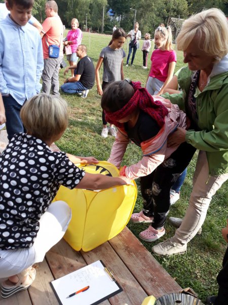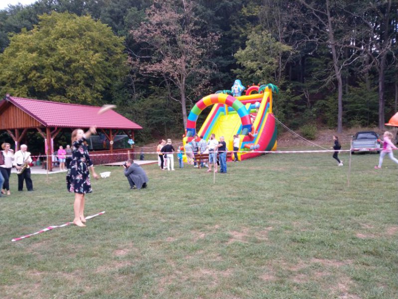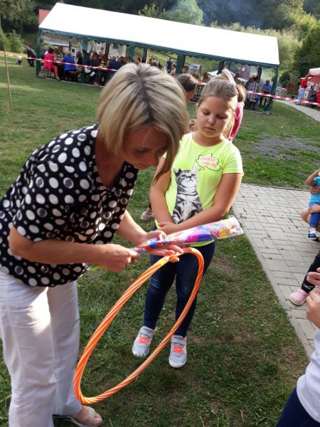 Licznie przybyłych gości powitała sołtys Grażyna Bulka i zaprosiła do wspólnego biesiadowania przy suto zastawionym stole, a w godzinach wieczornych do zabawy przy muzyce. Rada sołecka urozmaiciła spotkanie konkursami dla mieszkańców, np. rzucanie w dal snopem i kaloszem. Nie zabrakło śmiechu i dobrej, zdrowej rywalizacji, zwłaszcza wśród panów, którzy mieli okazję do sprawdzenia swoich umiejętności fizycznych. W rzucie kaloszem zaś ważna była odpowiednia technika. Natomiast o atrakcje dla najmłodszych uczestników, zadbali członkowie Stowarzyszenia „Patria Nostra”. Konkursy dla dzieci sprawdzały celność rzutów piłeczkami do chomików, rzutów do tarczy, „spostrzegawczość” dotykową, czy siłę fizyczną w czasie przeciągania liny. Za udział w konkursach najlepsi otrzymali nagrody. Po nich odbyły się warsztaty plastyczne, gdzie maluchy mając do dyspozycji różnobarwny „piasek”, mogły tworzyć własne kompozycje, bądź skorzystać z gotowych wzorów do ozdabiania. Wydarzenie to zostało zorganizowane we współpracy z miejscową jednostką Ochotniczej Straży Pożarnej, dzięki wsparciu finansowemu Gminy Męcinka, radnym Danielowi Pańczak i Kamilowi Bobowskiemu. Dziękujemy WSZYSTKIM, którzy przyczynili się do pomyślnej organizacji tego przedsięwzięcia.