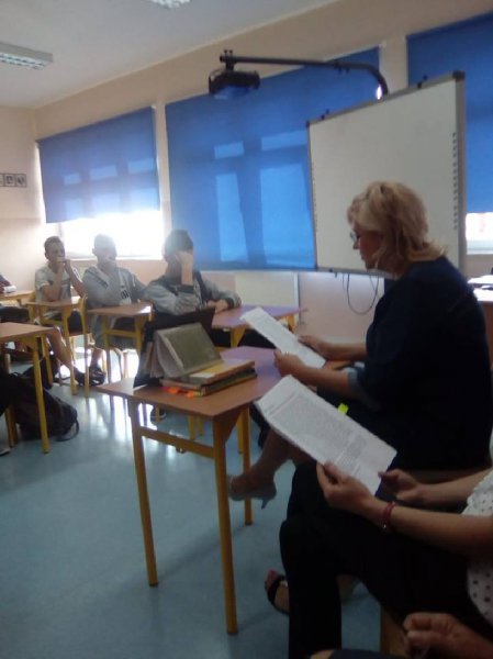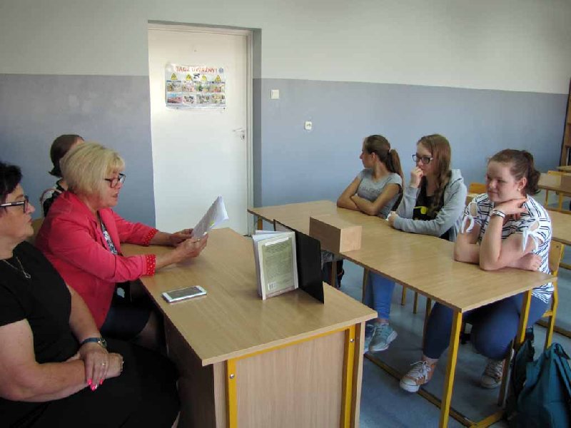 Słowo wstępne odnośnie powieści i jego autorze przedstawiła pani A. Śmiłowska. „Wizje szklanych domów i jaka powinna być Polska” – te fragmenty powieści przeczytały bibliotekarki z GBP w Męcince oraz Filii w Pomocnem i Przybyłowicach: E. Chodor, A. Brzuszek, M. Mikołajczyk. Uczniowie klas III gimnazjum i klas VIII z zainteresowaniem słuchali o marzeniach i życiu młodzieży w czasach, gdy Polska odzyskała niepodległość. Narodowe czytania przyczyniają się do częstego sięgania po polską klasykę. Czytając uczymy młodzież szacunku do polskiej literatury i kultury.