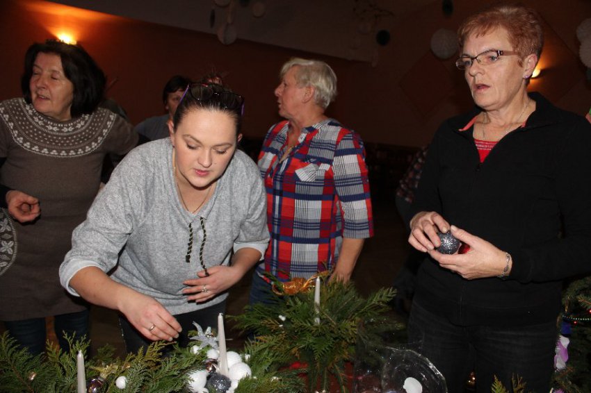 Stroiki świąteczne to jedna z najpiękniejszych dekoracji stołu na czas Świąt Bożego Narodzenia. Podczas spotkania z seniorami w Pomocnem, które odbyło się 12 grudnia br. to właśnie ten element dominował w ramach warsztatów florystycznych prowadzonych przez wykwalifikowaną florystkę. Nasze mieszkanki wraz z wójtem Mirosławem Brzozowskim samodzielnie tworzyły przepiękne i różnorodne dekoracje świąteczne.