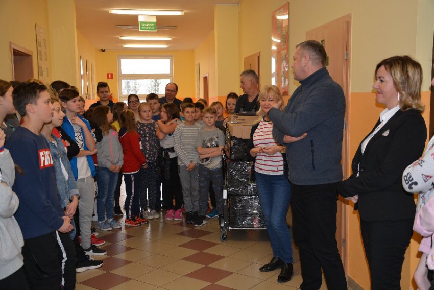 Laptopy uczniom wręczył wójt Mirosław Brzozowski.
