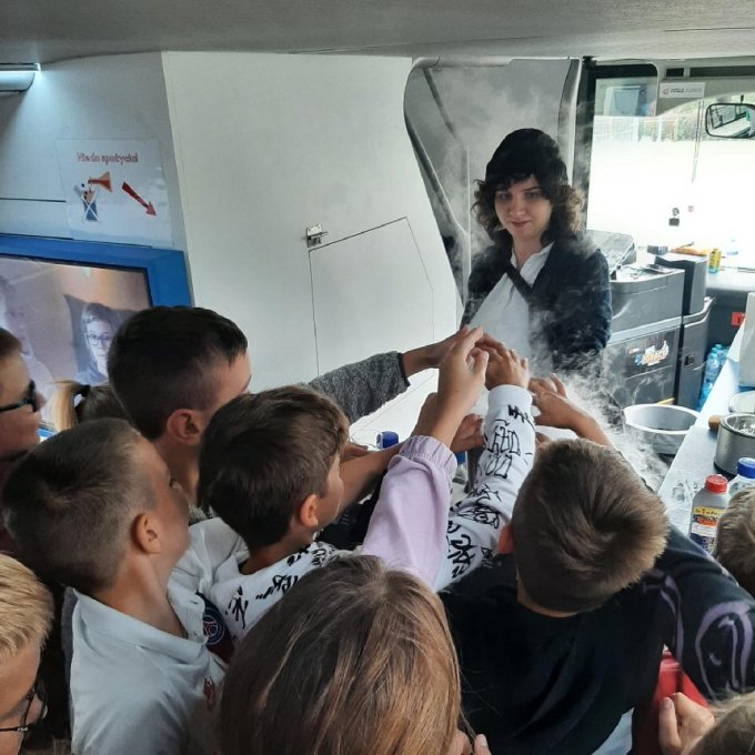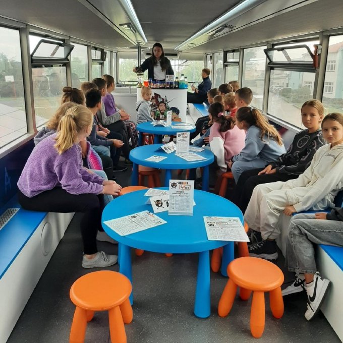 Dzisiaj 26 września 2024 r. w ramach projektu nasze mobilne laboratorium Ignacego Łukasiewicza w postaci Naukobusu przeprowadzone zostały zajęcia - pokazy i warsztaty edukacyjne.