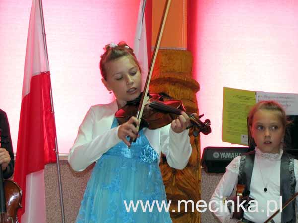 Ponadto w niedzielne popołudnie w mini koncercie zaprezentowali się uczniowie szkółki muzycznej „Kuźnia talentów” w gminie Męcinka, finansowanej z Europejskiego Funduszu Społecznego w ramach Programu Operacyjnego Kapitał Ludzki. Dzieci uczęszczające na chór zaśpiewały w kościele pieśń o patronie strażaków św. Florianie. Natomiast podczas spotkania w szkole na syntezatorze zagrali Klaudia Drożdżewska (uczennica Szkoły Podstawowej im. Mikołaja Kopernika w Męcince) i Kacper Omylanowski (uczeń Szkoły Podstawowej im. Piastów Śląskich w Piotrowicach) - opiekun Adrian Drozd. Na gitarze zagrały Martyna Kostrzewa i Karolina Kopeć (opiekun Zbigniew Woźny), natomiast na skrzypcach - Wiktoria Szumilas, Kornelia Cholewińska, Tomasz Wojciechowski i Szymon Łoniewski (opiekun Ryszard Wachowski) – uczniowie SP Męcinka. Koncert poprowadziła koordynator projektu Arleta Oksińska.