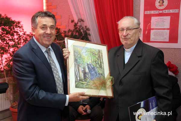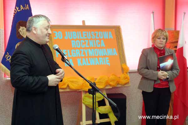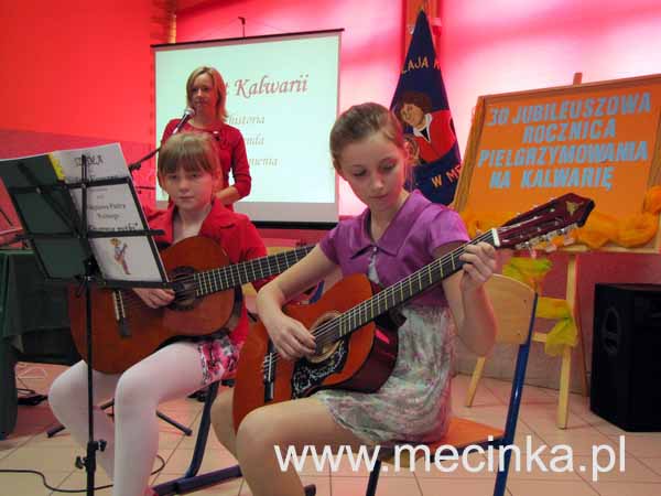 Po mszy św. zebrani przeszli pod szkołę, gdzie w amfiteatrze dodatkowo dała koncert strażacka orkiestra. W szkole wystąpił również chór druhen z OSP Pomocne. W budynku szkoły odbyło się spotkanie dotyczące historii Kalwarii. Można było obejrzeć wystawę fotograficzną (za wykonane zdjęcia kapliczek kalwaryjskich zostali wyróżnieni uczniowie Daria Słaba, Weronika Nowosińska i Andrzej Śmiłowski) i posłuchać, jak to było przed trzydziestu laty. W spotkaniu uczestniczyli m.in. ks. Józef Juźków, ks. Tadeusz Wnęk, ks. Marek Kluwak, wójt Zbigniew Przychodzeń, radni i mieszkańcy gminy Męcinka. Dyrektor Zespołu Szkół im. Mikołaja Kopernika w Męcince Zofia Głowiak podarowała zaproszonym gościom broszurę przygotowaną specjalnie na tę okazję staraniem uczniów i nauczycieli. Z kolei wójt Przychodzeń uhonorował księży obrazami przedstawiającymi fragment Kalwarii.