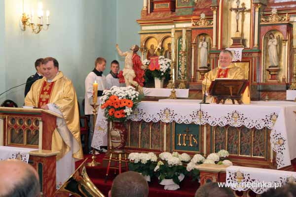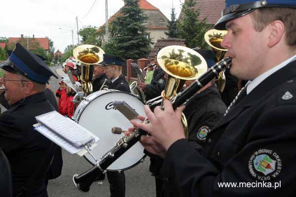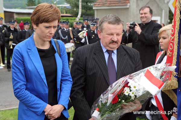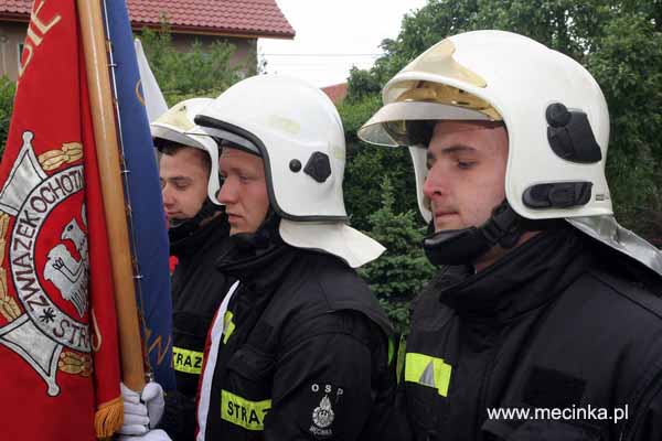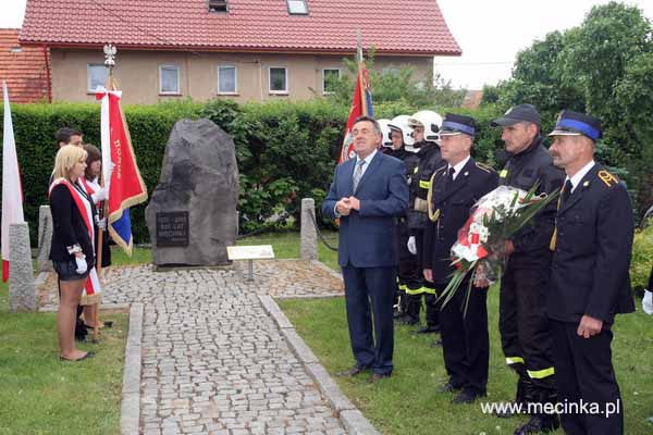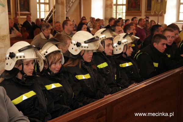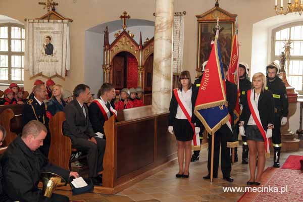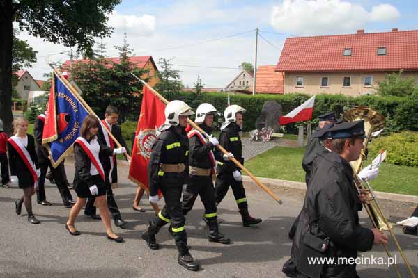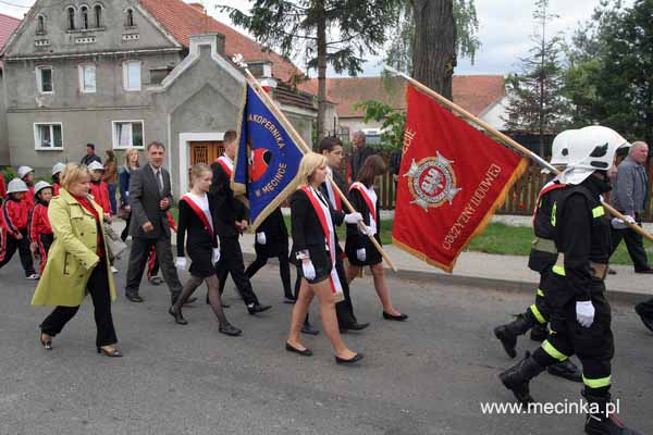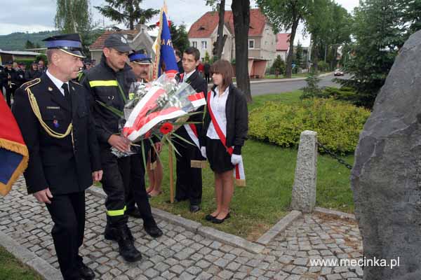 W niedzielę, 13 maja o godz. 13.45 przybyli na uroczystość spotkali się pod obeliskiem 800-lecia wsi Męcinka, gdzie delegacje OSP Męcinka, Zespołu Szkół w Męcince i sołectwa Męcinka złożyły kwiaty. Stamtąd w towarzystwie strażackiej orkiestry dętej z Lubawki zebrani przemaszerowali do kościoła, gdzie mszę św. odprawili ks. kanonik Józef Juźków i proboszcz parafii Męcinka ks. Marek Kluwak. Ks. Juźków, dzięki któremu trzydzieści lat temu Kalwaria została ocalona od zapomnienia, modlił się w intencji zmarłych mieszkańców, którzy pracowali przy renowacji tego dziedzictwa. Ks. Marek modlił się za strażaków.