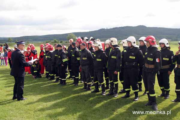Na boisku odbyły się pokazy strażackie, w których zaprezentowały się drużyny pożarnicze z terenu gminy Męcinka: OSP Męcinka (dzieci, młodzież i dorośli mężczyźni), OSP Małuszów (dzieci, kobiety i mężczyźni), OSP Pomocne (mężczyźni) i OSP Przybyłowice (mężczyźni).