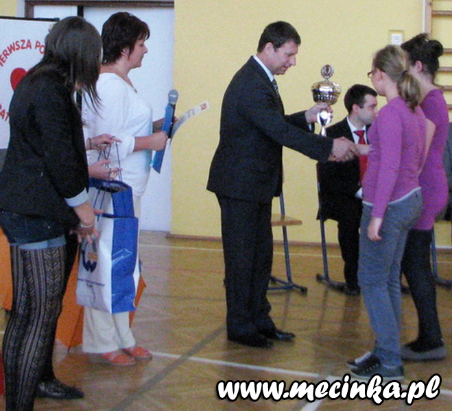 Zdobywcom pierwszego miejsca w kategorii szkół podstawowych i gimnazjów nadano tytuł „Mistrz Ratownictwa Powiatu Jaworskiego” oraz wręczono puchary ufundowane przez starostwo powiatowe w Jaworze, które objęło również patronat nad konkursem. Ceremonii dekoracji dokonał starosta Stanisław Laskowski oraz wójt gminy Męcinka Zbigniew Przychodzeń. Nagrodę główną ufundowaną przez europosłankę Lidię Geringer d'Odenberg - czterodniowy pobyt w Strassburgu, otrzymała Dominika Olchówka z Gimnazjum w Marcinowicach, którą wręczył asystent Grzegorz Koniak. Na rzecz zdobywczyni drugiego miejsca nagrodę scedował zwycięzca - gimnazjalista z Męcinki, Jacek Regulski. Wszyscy uczestnicy otrzymali dyplomy i nagrody rzeczowe pozyskane przez organizatorów od sponsorów (m.in. WORD Legnica).