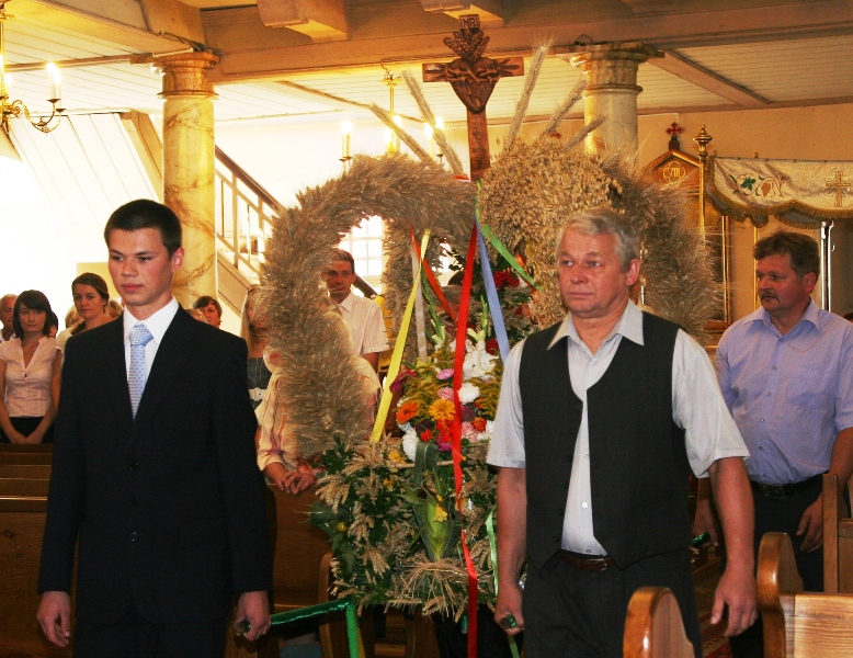 świątyni został przyniesiony również wieniec dożynkowy, któremu towarzyszył