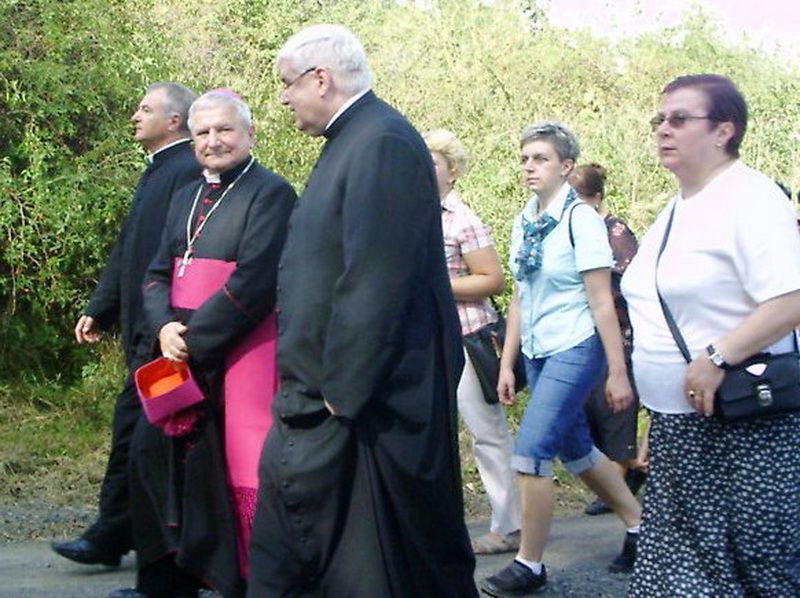 Apostoła drogą kalwaryjską w kierunku Górzca. Wśród tłumu pątników obecnych