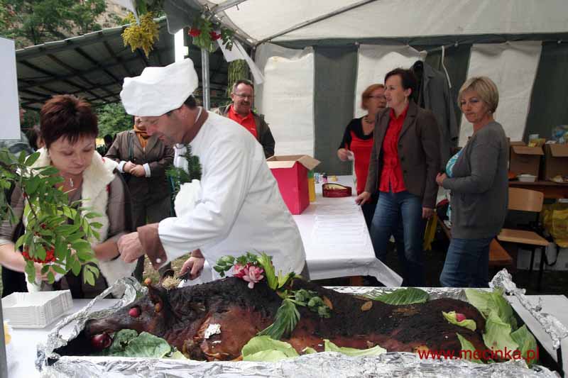 Na festyn przybyło wielu zaproszonych gości. Głównym punktem menu były oczywiście ziemniaki serwowane pod różnymi postaciami. Rodzice dzieci ze Szkoły Podstawowej w Piotrowicach przygotowali frytki. Na ich stoisku można też było kupić pyszne ciasta. Organizatorzy festynu serwowali tradycyjne placki ziemniaczane. Ogromne wzięcie miały te „po piotrowicku”, czyli ze specjalnym sosem i surówkami. Smakosze zajadali się pyrami prosto z ogniska. Nowością były w tym roku ziemniaki z… parnika. Można było dodać do nich masło, sól lub śmietanę - wszystkie smakowały wyśmienicie. Chętni mogli skosztować również pieczonego prosiaka w kapuście lub pajdy swojskiego chleba ze smalcem i ogórkiem małosolnym.