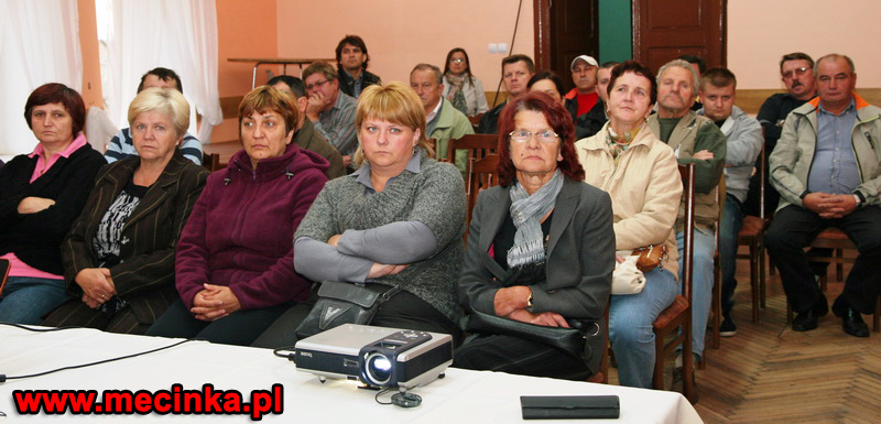 Zasady dofinansowania przydomowych oczyszczalni ścieków omówił wójt Gminy Męcinka Zbigniew Przychodzeń, który przedstawił także koszty budowy kanalizacji sieciowej w tzw. miejscowościach podgórskich z terenu gminy. W przeliczeniu na osobę są one niewspółmiernie wysokie do uzyskanych rezultatów. Z wyliczeń wynika, że koszt takiej kanalizacji wyniósłby ok. 15 tys. zł na osobę w Myślinowie, ok. 12 tys. zł w Stanisławowie i ok. 11 tys. zł w Muchowie i Pomocnem. Natomiast koszt budowy przydomowej oczyszczalni ścieków waha się w granicach 10-12 tys. zł, z czego 55 procent pokrywa mieszkaniec oraz dofinansowanie w programie, część budżet gminy.