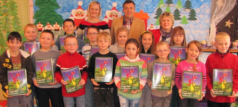 Wójt Zbigniew Przychodzeń wcielił się chyba w rolę św. Mikołaja i wykorzystując świąteczny czas odwiedził najmłodsze dzieci ze szkół podstawowych z terenu gminy Męcinka, by rozdać im prezenty – książki promujące nasz region. Dzieci bardzo ucieszyły się z podarków. Stwierdziły nawet, że książki są lepsze od słodyczy. Być może czuły już przesyt po „rozpracowaniu” paczek od św. Mikołaja, a być może spodobały im się kolorowanki z naklejkami. Wszystkie maluchy obiecały wójtowi, że wykorzystają wolny świąteczny czas, by rysunki pięknie pokolorować. Potem powstanie z nich wystawa w szkole.