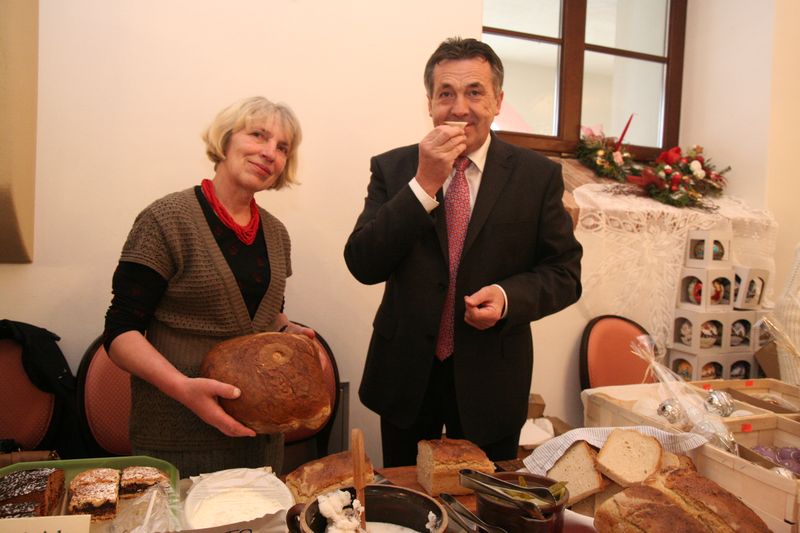 W jarmarku uczestniczył również wójt Zbigniew Przychodzeń, który odwiedził naszych wystawców i wziął udział w Konferencji Regionalnej na temat „Skuteczne wdrażanie Lokalnej Strategii Rozwoju sposobem na rozwój obszarów wiejskich Gór i Pogórza Kaczawskiego”. Podczas konferencji o nowej perspektywie finansowej Unii Europejskiej mówił Paweł Czyszczoń, dyrektor Wydziału Obszarów Wiejskich w UMWD. Przykłady najlepszych projektów realizujących cele Lokalnej Strategii Rozwoju Partnerstwa Kaczawskiego omówiły Agnieszka Wegneris i Małgorzata Dubrowska z biura LGD. Natomiast dziesięć lat działalności Stowarzyszenia Kaczawskiego przedstawiły Gabriela Męczyńska, Beata Castańeda Trujillo i Ewelina Rozpędowska.