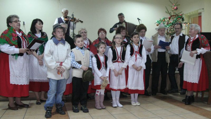 Z zaproszenia skorzystali nie tylko mieszkańcy Męcinki, ale również chór Albertówka z Jawora. Jak widać współpraca między zespołami się rozwija. W programie znalazły się scenki związane z narodzeniem Dzieciątka Jezus oraz kolędy i pastorałki. Do wspólnego kolędowania dołączyli się też mieszkańcy. Nie zabrakło opłatka, serdecznych życzeń i poczęstunku. Teresa Witowska w imieniu zespołu Ojry Bis dziękuje wszystkim, którzy zaangażowali się w przygotowanie spotkania.