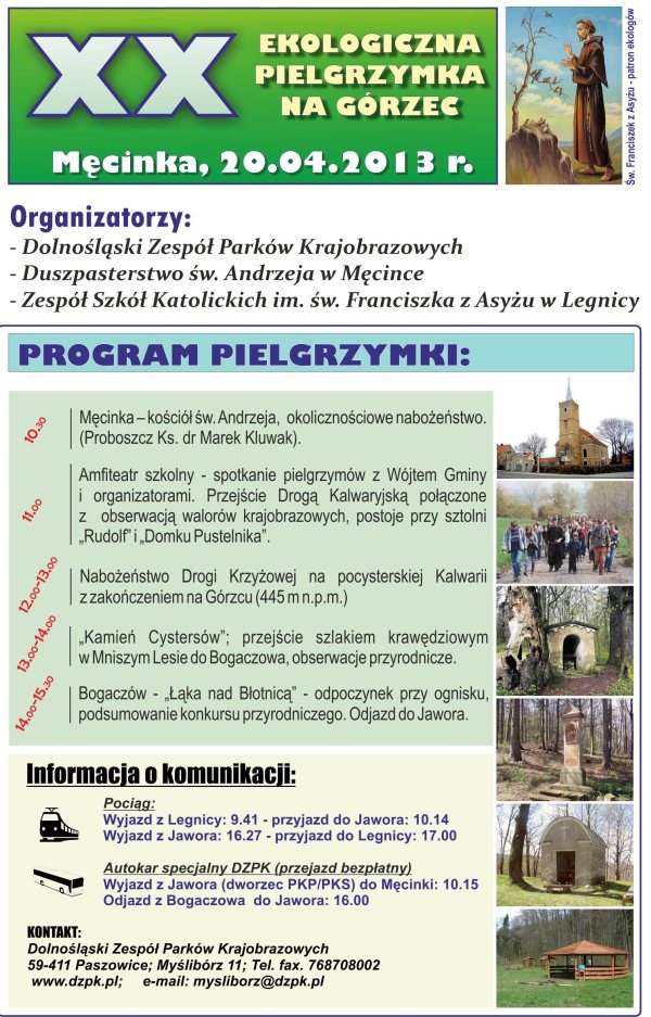 XX EKOLOGICZNA PIELGRZYMKA NA GÓRZEC czwartek, 18, kwiecień 2013 14:22 Drukuj fUdostępnij Zobacz więcej szczegółów, m.in. program pielgrzymki (powiększ plakat)
