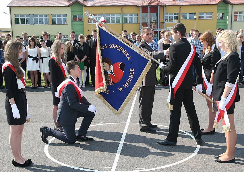W piątek przyszedł czas na oficjalną część zakończenia roku szkolnego poprzedzony mszą św. odprawioną przez ks. Marka Lacha i ks. Marka Kluwaka, wręczenie świadectw z wyróżnieniem (a było ich wiele) i nagród oraz po raz pierwszy w historii szkoły tytułów „Młodego Copernicusa” dla uczniów szkoły podstawowej i „Copernicusa” dla uczniów gimnazjum. Tytuły te otrzymali ci, którzy w sposób wyjątkowy wyróżnili się w określonych dziedzinach. Tytuły „Młody Copernicus” otrzymali: Marta Kusek – humanista, artysta; Emilia Kępa – nauka, humanista, artysta, społecznik; Jakub Pismiok - nauka, humanista, poliglota, artysta, społecznik; Dominika Wnuk – artysta; Ewelina Makuch – artysta; Dominik Morawski – artysta; Kornelia Cholewińska – artysta; Katarzyna Bolesta – artysta; Katarzyna Gibała – artysta; Tomasz Kret – nauka i technika; Klaudia Malina – nauka i technika; Magdalena Bolesta – artysta; Natalia Budziszyn – nauka i technika, sportowiec, humanista; Ernest Rudziec – nauka i technika, humanista; Kacper Chudzik – sportowiec i Szymon Stanisławiec – humanista. Tytuły „Copernicus” otrzymali: Natalia Kostrzewa – humanista; Sabian Węgliński – nauka i technika; Radosław Sobotkiewicz – społecznik; Magdalena Torończak – nauka i technika, humanista; Patryk Pęczak – nauka i technika; Dawid Urbanowski – nauka i technika; Malwina Pietras – sportowiec; Paweł Talar – nauka i technika; Wolfgang Fuchs – nauka i technika, poliglota; Daniel Wojda – nauka i technika, matematyka; Łukasz Stachowiak – sportowiec; Sara Łuba – społecznik; Daria Skuza – matematyk i Paulina Łąpieś – artysta.Podczas piątkowych uroczystości doniosłym punktem programu było przekazanie sztandaru szkoły przez uczniów gimnazjum. Absolwenci przekazali go drugoklasistom, a ci złożyli odpowiednie ślubowanie. Zarówno ta chwila, jak i wręczenie świadectw uczniom kończącym szkołę w niejednym oku wywołała łzę wzruszenia. Wyjątkowy był też polonez w wykonaniu absolwentów gimnazjum. Tego dnia nie zabrakło oczywiście kwiatów i podziękowań za trud wychowania skierowanych do nauczycieli oraz listów gratulacyjnych dla rodziców. Z nietypowymi prezentami przybył na uroczystość wójt Zbigniew Przychodzeń, który wręczył pedagogom mieszkającym na terenie gminy Męcinka... domowe kosze do segregacji odpadów. Zanim zabrzmiał ostatni w roku szkolnym 2012/2013 dzwonek, dyrektor Zofia Głowiak życzyła wszystkim udanych i bezpiecznych wakacji.