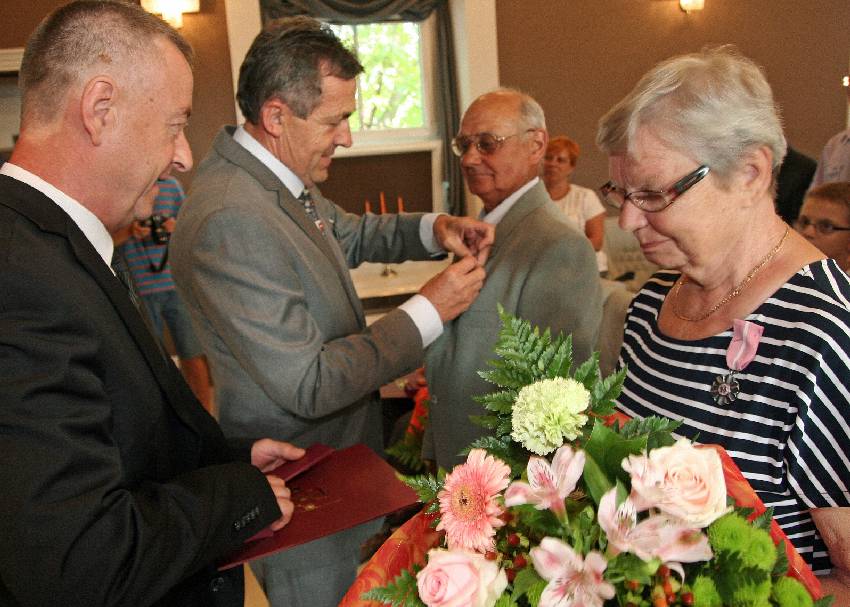 W poniedziałek, 29 lipca br. podczas sesji Rady Gminy Męcinka uhonorowane zostały wieloletnie małżeńskie pary. Jubilaci z gminy Męcinka obchodzili diamentowe, szmaragdowe i złote rocznice ślubu. Z tej okazji okolicznościowe odznaczenia nadane przez prezydenta RP wręczył wójt Zbigniew Przychodzeń. Oprócz odznaczeń i kwiatów w tym dniu nie zabrakło łez wzruszenia. Jubilaci uśmiechali się, czuli się świetnie i nie kryli zaskoczenia z powodu takiej okrasy.