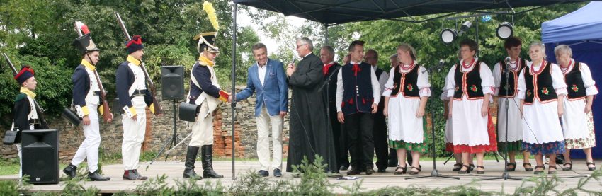 Z kolei lokalne talenty, małe i duże, mogły przedstawić swe umiejętności na scenie pod chmurką. Zaśpiewali Chrośliczanie i PERŁA z Przybyłowic, dzieci z terenu parafii tańczyły, a Ewelina i pani Teresa recytowały wiersze. Miło było też posłuchać koncertu „Wspomnień czar” w wykonaniu ks. Grzegorza. Grupa rekonstrukcyjna II Pułku Księstwa Warszawskiego tradycyjnie oddała salwę. Można było podziwiać rzeźby Zdzisława Nowaka i zdjęcia wykonane przez dzieci z terenu gminy Męcinka, które biorą udział w wakacyjnych warsztatach fotograficznych.