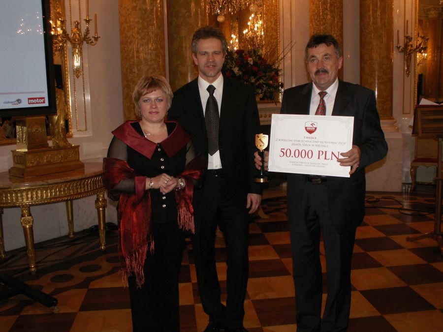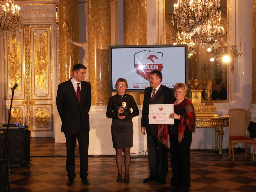 Jednym z nagrodzonych jest Zespół Szkół w Męcince, który za inicjatywę pt.: „Z RODZICAMI SZYBCIEJ NAUCZYMY SIĘ RATOWAĆ ŻYCIE” zdobył I miejsce. Nagrodę w kwocie 50 000 zł oraz ZŁOTĄ TARCZĘ BEZPIECZEŃSTWA z rąk samego Krzysztofa Hołowczyca odebrali: Dyrektor Zespołu Szkół w Męcince – Zofia Głowiak, Wójt Gminy Męcinka – Zbigniew Przychodzeń oraz Beata Melnarowicz – nauczyciel .