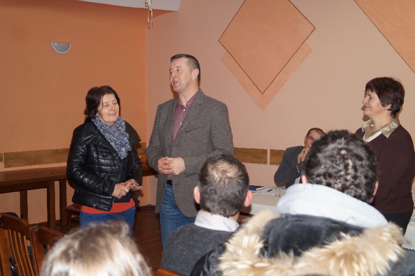 W trakcie spotkania Wójt Gminy Mirosław Brzozowski wraz z Zastępcą Wójta Arletą Gregulską – Oksińską przeprowadzili konsultacje społeczne projektu strategii rozwoju gminy Męcinka za lata 2014-2015.