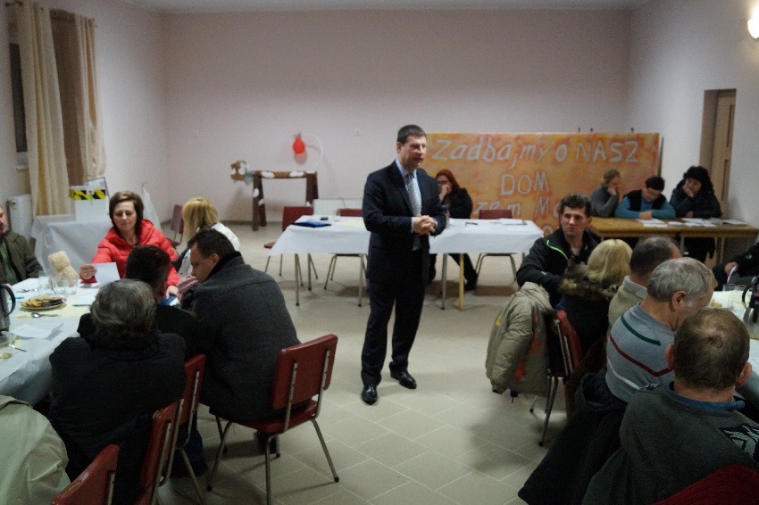 W trakcie spotkania Wójt Gminy Mirosław Brzozowski przeprowadził konsultacje społeczne projektu strategii rozwoju gminy Męcinka za lata 2015-2025.