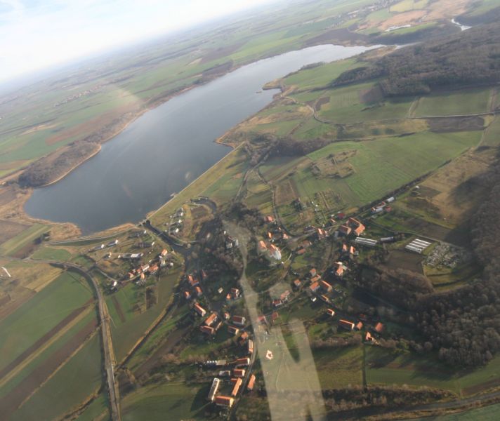 Żarek - wieś w 1977 r. liczyła 72 budynki mieszkalne, kaplicę Najświętszego Serca Pana Jezusa, szkołę podstawową, świetlicę, bar i fabrykę przetworów kostnych. Tuż przed przesiedleniem mieszkańcy wsi rozebrali kaplicę, a część materiałów, wyposażenia i przedmioty liturgiczne trafiły do budującego się wtedy kościoła w Krajewie. Prace nad budową zbiornika zostały zakończone w 1978 r. W latach 1979 - 1980 nastąpiło jego napełnienie wodą.