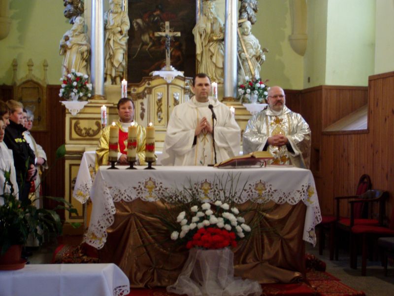 Uroczystość rozpoczęła się mszą świętą odpustową w kościele parafialnym p.w. św. Marcina w Pomocnem, którą celebrował ksiądz Andrzej Grocki wraz z zaproszonymi kapłanami. Po zakończeniu mszy świętej, wierni zgromadzeni w świątyni odsłuchali okolicznościowego przemówienia, które wygłosiła Jolanta Dubińska radna wsi Pomocne. Modlitwę w intencji ojczyzny odczytał natomiast Jan Fajkiel.