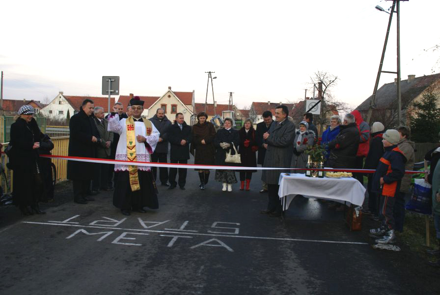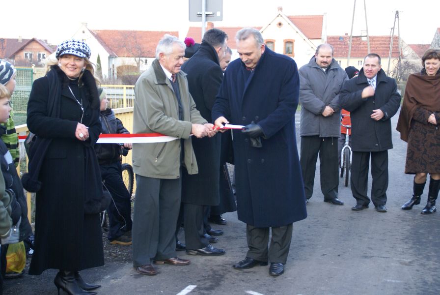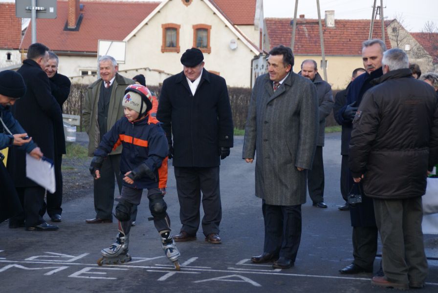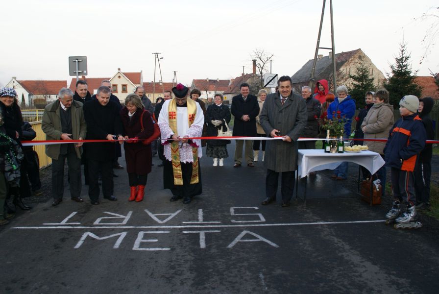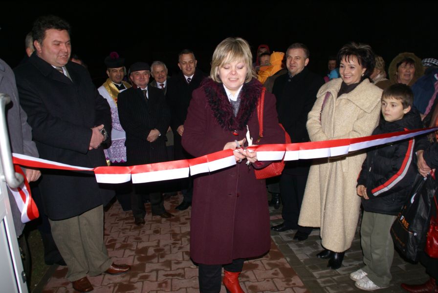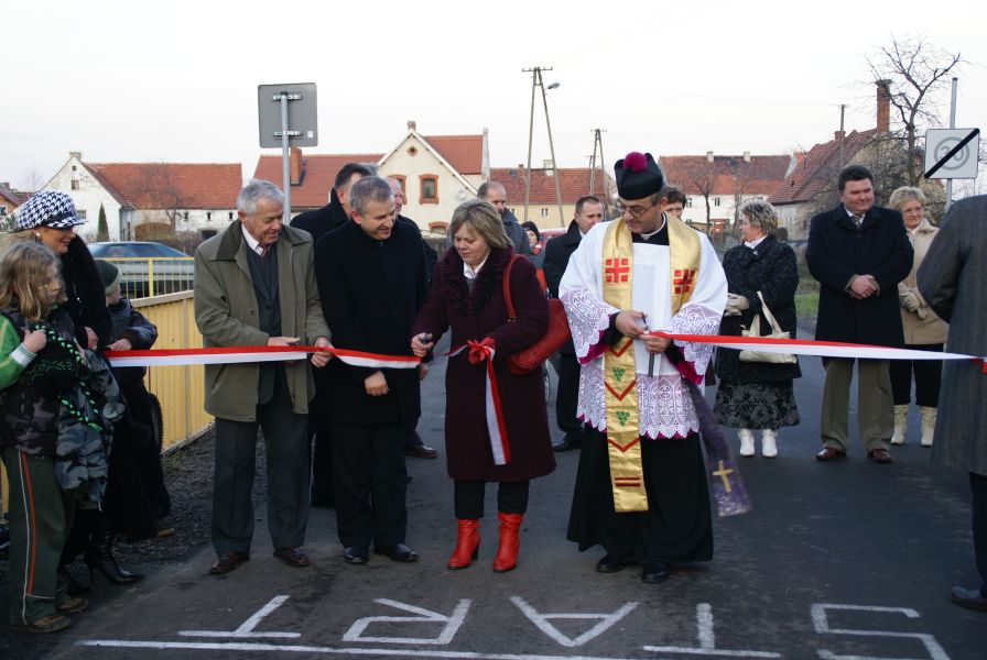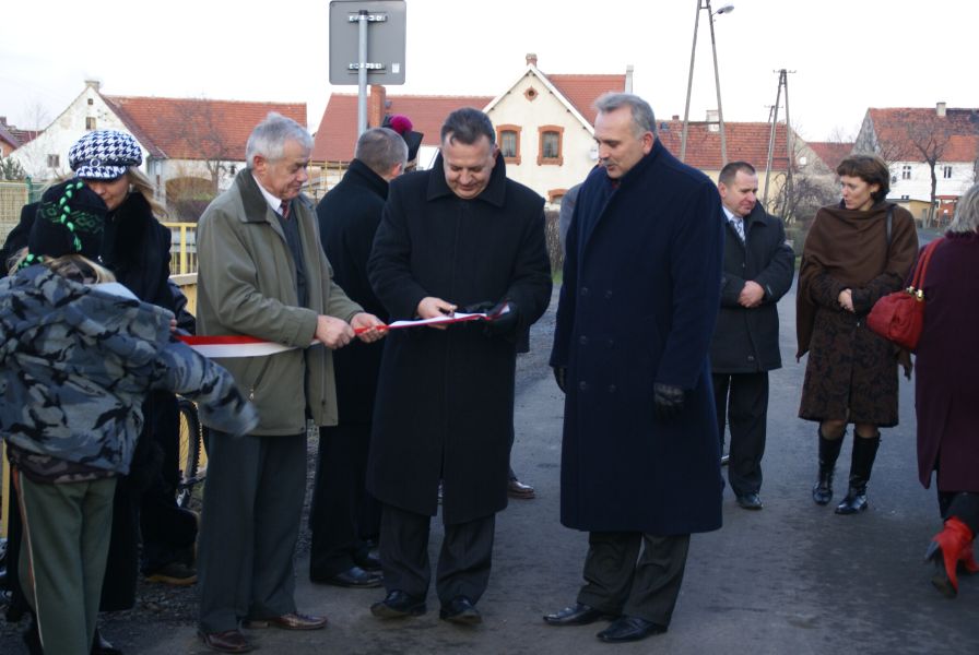 Uroczystego otwarcia inwestycji dokonała Elżbieta Witek Posłanka na Sejm RP, Ryszard Czerwiński Dyrektor Wydziału Rozwoju Obszarów Wiejskich Urzędu Marszałkowskiego Województwa Dolnośląskiego, Zbigniew Przychodzeń Wójt Gminy Męcinka, Zygmunt Melner i Józef Święcicki członkowie Zarządu Powiatu Jaworskiego, Edward Górski wykonawca inwestycji, Józef Szatkowski, Stanisław Prędkiewicz Przewodniczący Rady Gminy Męcinka, Małgorzata Stawowczyk radna Piotrowic, Andrzej Ankus sołtys wsi oraz członkowie rady sołeckiej.