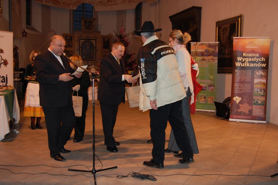 W trakcie tej niecodziennej imprezy odbyły się także dwa konkursy: na „Najpiękniejsze stoisko na Jarmarku” (I - Zespół „Czaplanki”, II – Zespół „Swojacy”, III – Zespół „Kukułeczki” ) oraz na „Pamiątkę świąteczną od Górala Kaczawskiego” . Reprezentant gminy Męcinka Zdzisław Nowak za wykonanie rzeźby w drewnie zdobył II nagrodę (I –Piotr Sarul, Nowy Kościół – kamienie szlachetne , III – KGW Lubiechowa –ozdoba świąteczna).