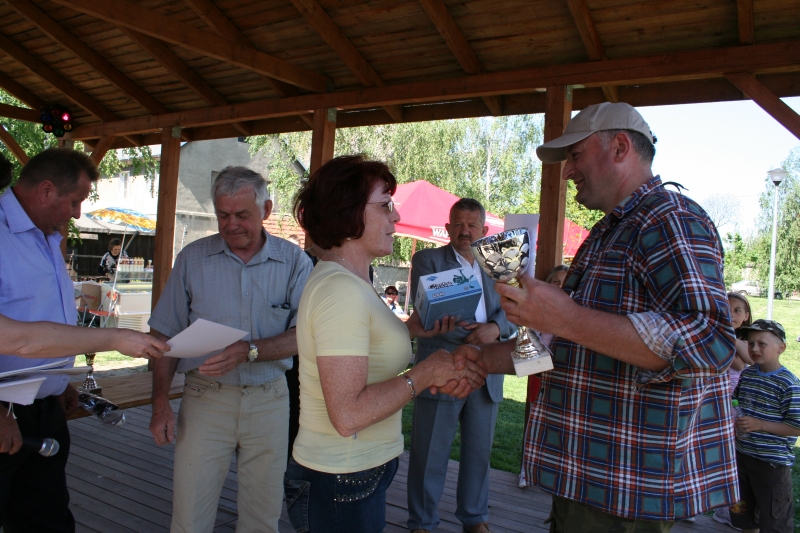 Pierwsze miejsce zajął Jacek Szwed z Małuszowa, który złapał ponad 40 cm leszcza, dwa japońce i karpia. W nagrodę otrzymał puchar i aparat. Drugie miejsce zdobył Marek Szymczyk z Piotrowic, który otrzymał puchar i profesjonalny kołowrotek. Dla obu wymienionych sołtys Piotrowic Andrzej Ankus ufundował po 200 zł dodatkowej nagrody. Trzecie miejsce zajął Piotr Łuba z Męcinki, zdobywając puchar i wędkę.