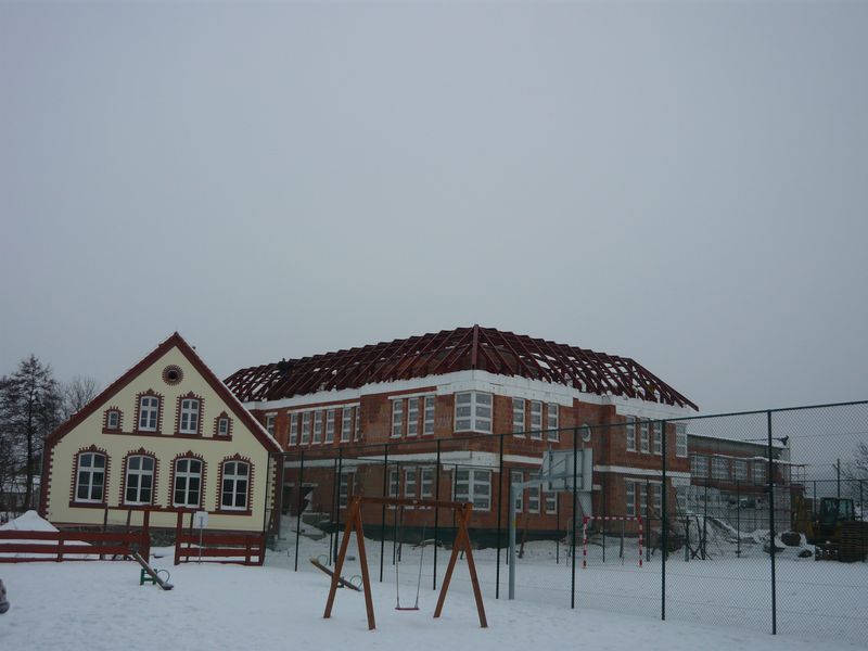 Obecnie wykonano już przebudowę istniejącego budynku szkoły. W ramach projektu obecnie realizowane są następujące prace budowlane: