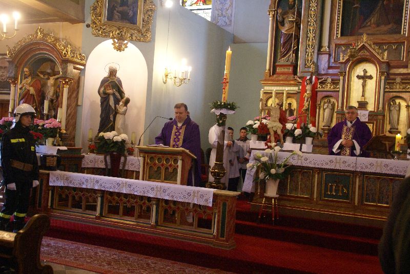 Po zakończeniu nadzwyczajnej sesji odbyła się msza święta w kościele pw. św. Andrzeja Ap. w Męcince celebrowana przez ks. wicedziekana Zbigniewa Dyla i ks. proboszcza Marka Kluwaka, podczas której uczestnicy sesji, reprezentanci kombatantów, Ochotniczej Straży Pożarnej w Męcince, nauczyciele i uczniowie szkół oraz społeczność lokalna modlili się w intencji ofiar katastrofy.