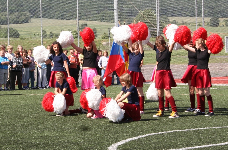 Pierwszego dnia, po powitaniu przez wójta Zbigniewa Przychodzenia, dyrektor Zofię Głowiak i społeczność szkolną z Męcinki, wzięli udział w zawodach sportowych. Tu bardziej liczyła się dobra zabawa niż rywalizacja, chociaż warto dodać, że zawodnicy dawali z siebie wszystko. Chłopcy starsi rozegrali mecz piłki nożnej, a dziewczęta zagrały w siatkówkę. W rzucie piłeczką palantową na odległość wśród chłopców starszych wygrał Patryk Słupski, drugi był Jacek Regulski, a trzeci Tomas Fara. Wśród dziewcząt młodszych zwyciężyła Nikca Cepelikova przed Malwiną Pietras i Anicką Mażankovą, zaś wśród dziewcząt starszych Joanna Regulska przed Ireną Maslovą i Patrycją Suską.