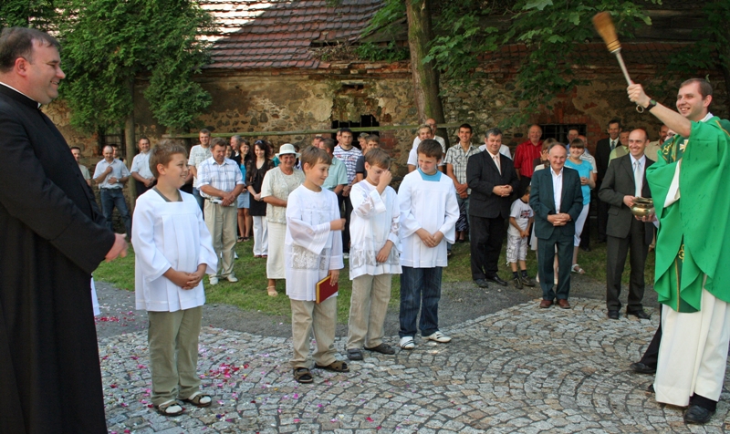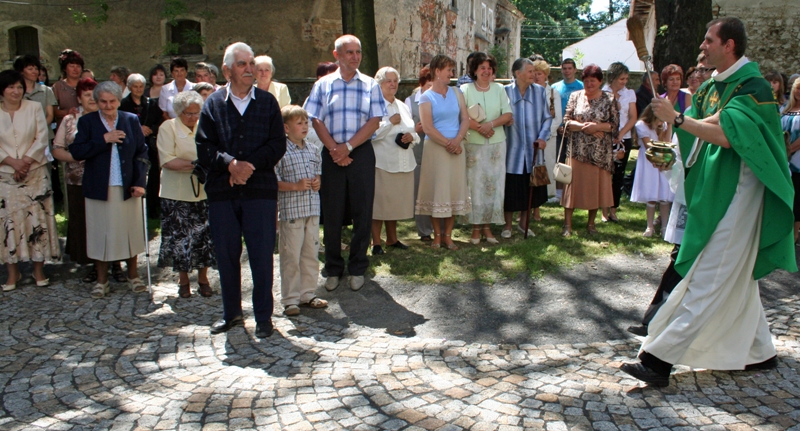 - Narodzinom św. Jana Chrzciciela towarzyszyły różne znaki. Dzisiaj również człowiek musi mieć serce i oczy otwarte na działania Pana Boga. Droga do świętości jest otwarta przed każdym z nas - mówił do zgromadzonych ks. Maciej. Po mszy św. został pobłogosławiony nowy chodnik przy kościele, który powstał z inicjatywy Rady Parafialnej i lokalnej społeczności. Większość prac parafianie wykonali sami z pomocą miejscowej firmy Grzegorza Lewkowicza. Kostka granitowa została zakupiona. Proboszcz ks. Marek Kluwak serdecznie dziękował za wykonane prace, za zagospodarowanie placu przy poddanym renowacji krzyżu (tu wiele zrobił Rafał Cichy), za ufundowanie przez grupę mieszkańców tablicy informującej o patronie kościoła oraz płyt z dziesięciorgiem przykazań. Wszystkimi działaniami koordynował radny Krzysztof Karaban.