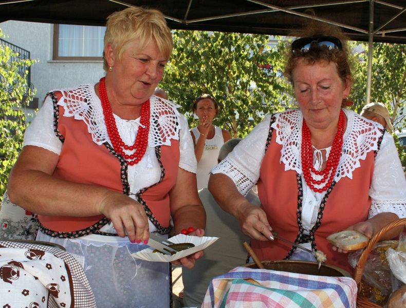 Gospodynie z Przybyłowic przygotowały wiele smakołyków - sałatki, ciasta, kiełbaski z grilla. Każdy mógł spróbować pajdy ze smalcem i ogórkiem małosolnym.