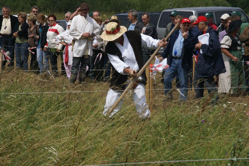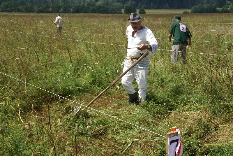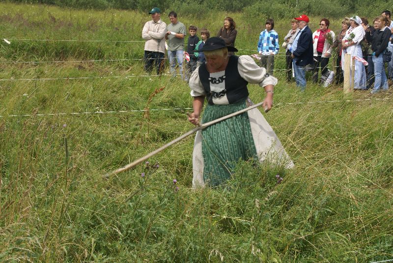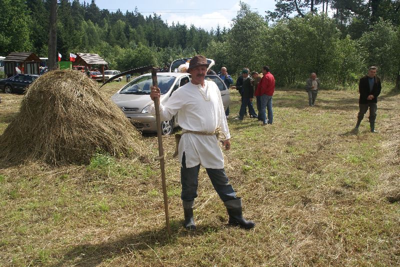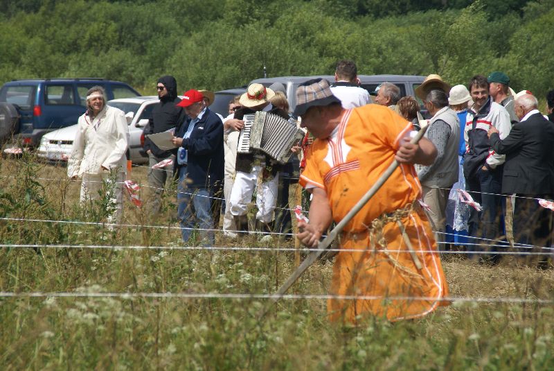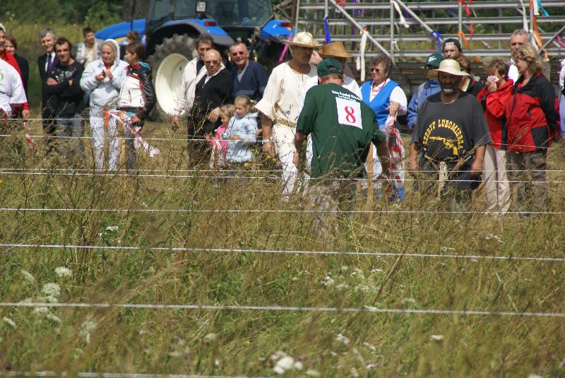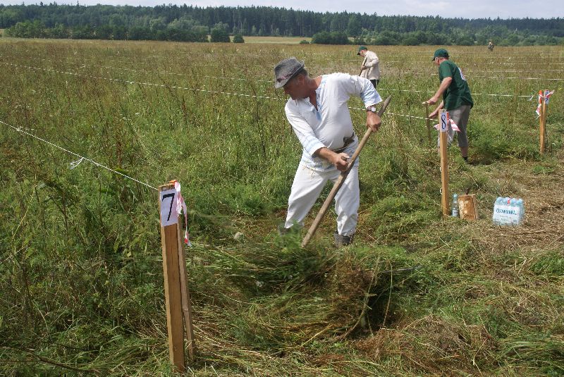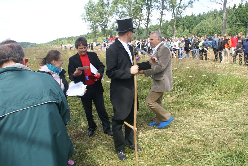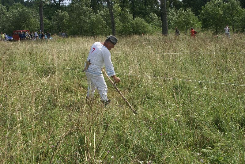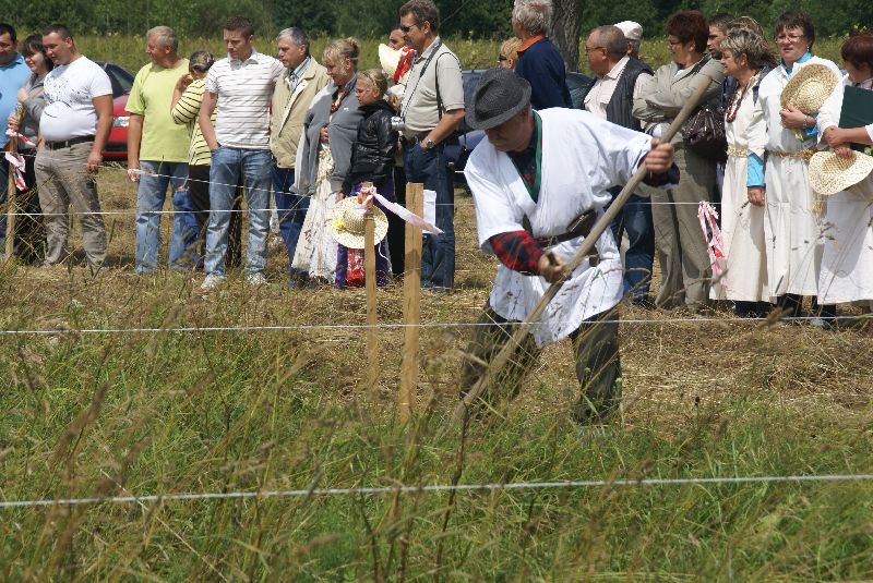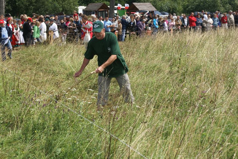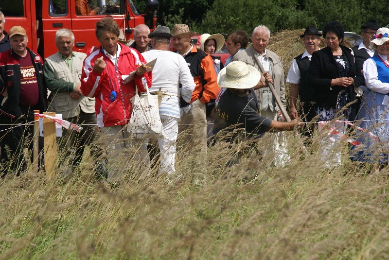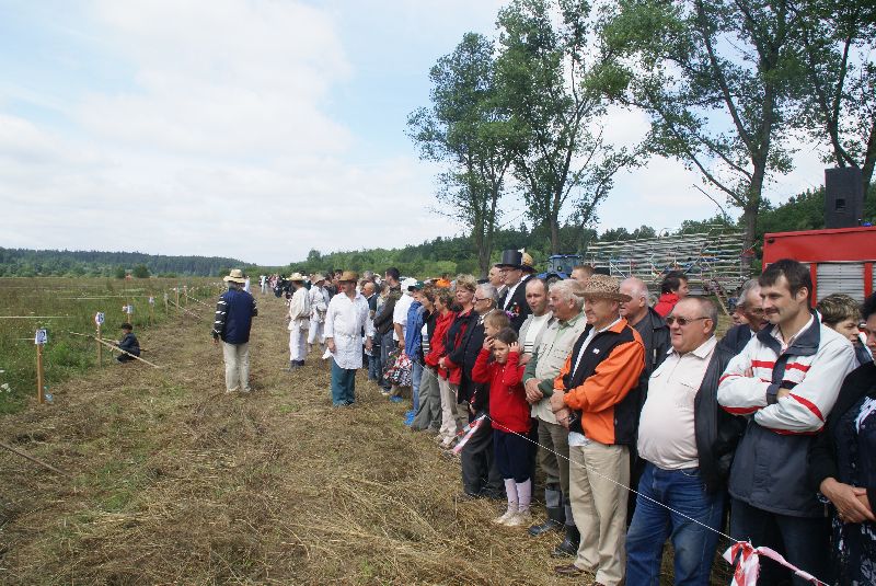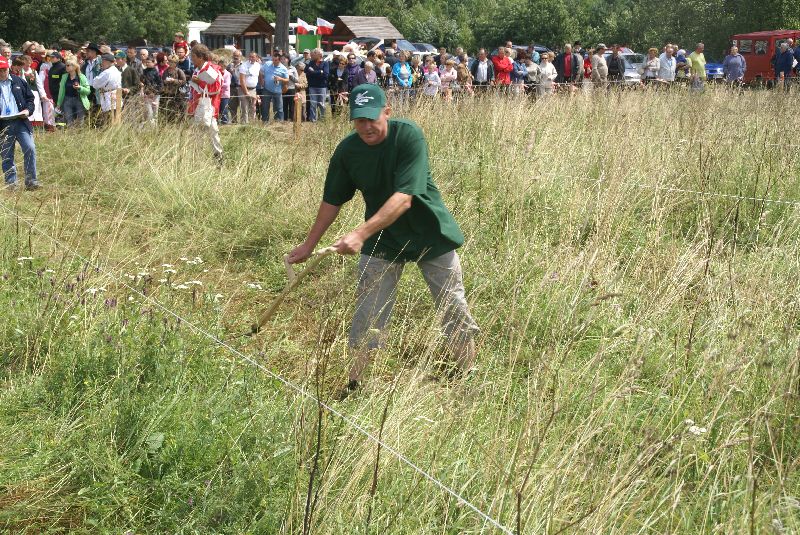 Zawodnicy wyruszyli na łąki po porannej mszy świętej odprawionej przez proboszcza parafii Pomocne ks. Marka Lacha. Ich wysiłki oceniało pięcioosobowe jury - sędzia główny Edward Lityński, Zbigniew Tusiński, Wiesław Gołuch, Janusz Ptaszyński i Leszek Gawron. W konkurencji koszenia dla pań zwyciężyła Barbara Brzuszek z Pomocnego - w nagrodę otrzymała mikrofalę oraz kryształową statuetkę . Tuż za nią znalazła się Ewa Kulpka z Krotoszyc (zdobyła robot kuchenny). Trzecie miejsce zajęła Anna Radomska z Chełmca i wygrała zestaw naczyń.